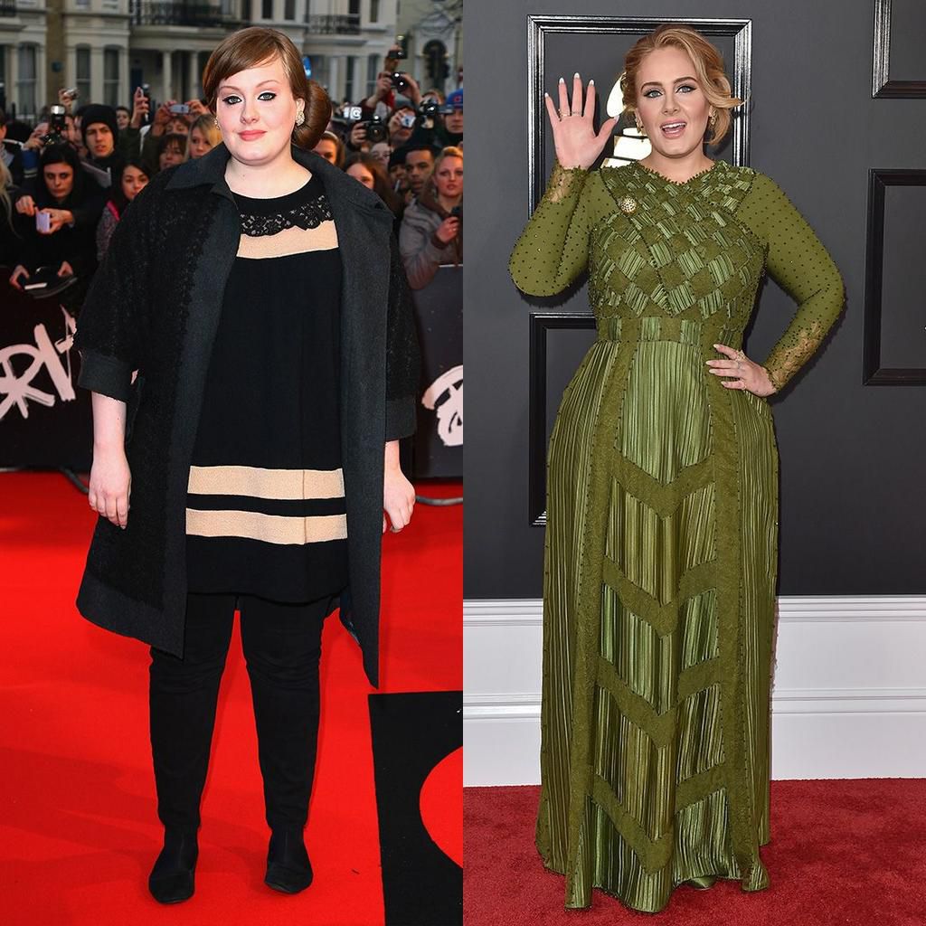 Adele Adele hasnt shared a number when it comes to how much weight shes lost, but her figure is noticeably slimmer from when she first topped chartseven after giving birth. But it was never about the scale for her. She decided "to get in shape for myself, but not to be a size zero or anything like that" in 2015, according to Rolling Stone, and cut back on sugar (but not carbs"Id never deprive myself like that!" she said) to build stamina for touring. Getty Images