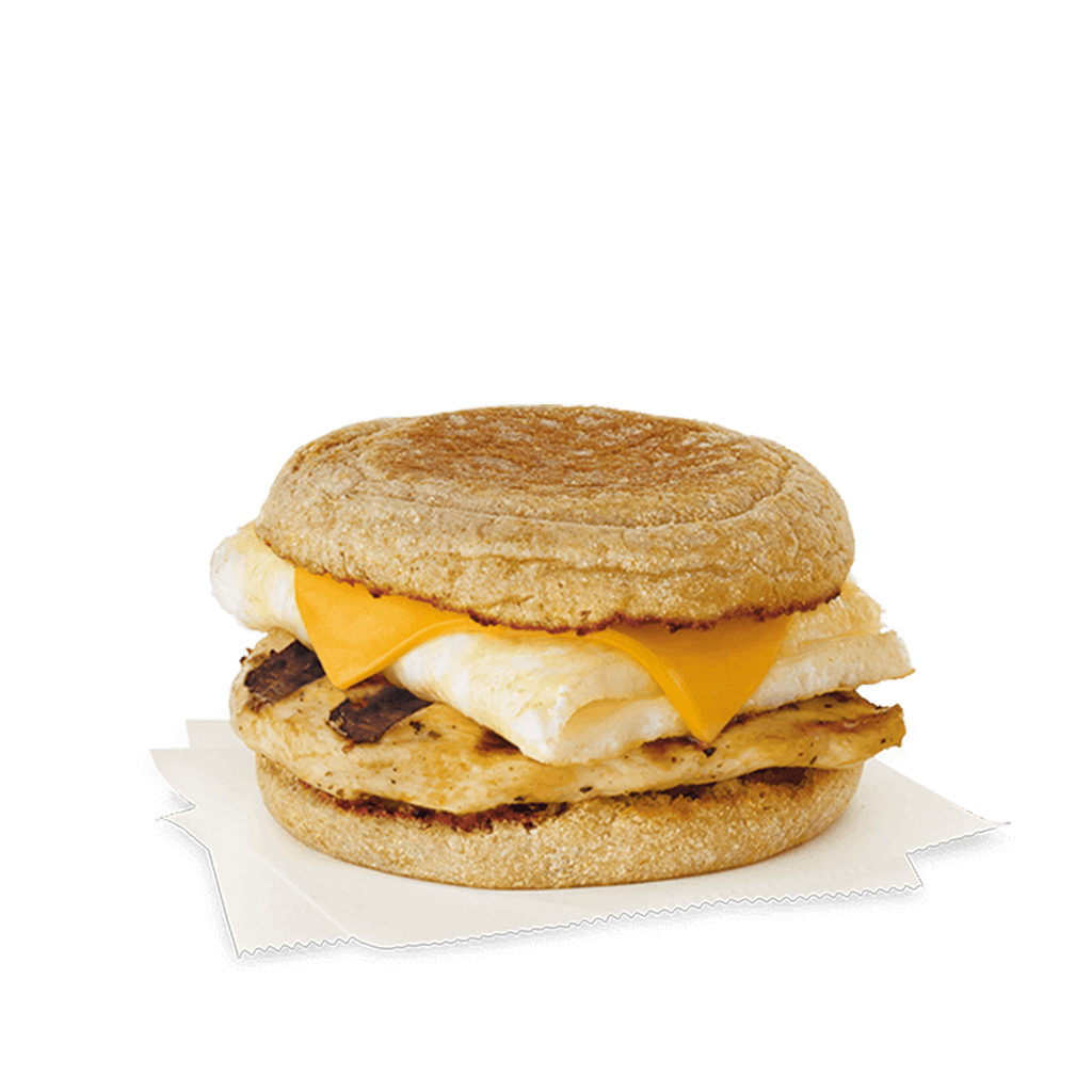 Chick-Fil-A Egg White Grill With less than 300 calories, 26 grams of filling protein, and just 3.5 grams of saturated fat, this meal is a great pick for breakfast because the chicken is grilled and not fried, says Ivey. To round things out, she recommends adding a fruit cup. Per serving: 290 calories, 8 g fat (3.5 g saturated), 29 g carbs, 2 g sugar, 970 mg sodium, 1 g fiber, 26 g protein Courtesy Image
