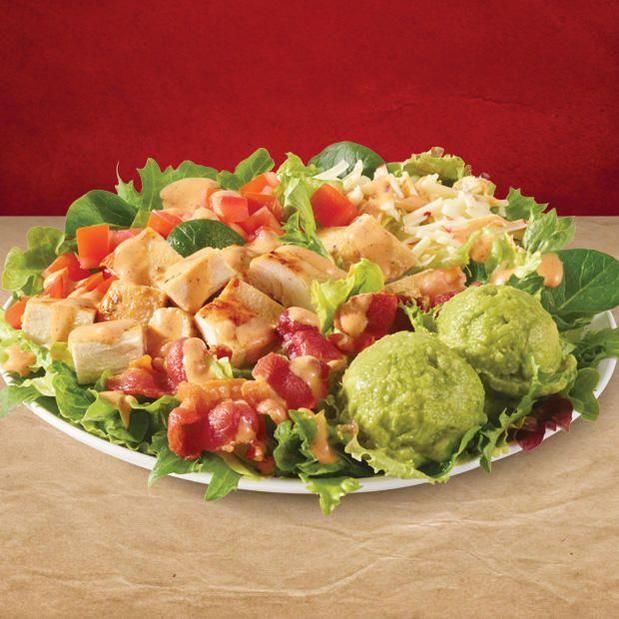 Wendys Southwest Avocado Chicken Salad With grilled chicken, crunchy bacon, and creamy avocado, this flavorful salad is a solid optionespecially since it provides a whopping 43 grams of protein, says Ivey. Use just one packet of dressing rather than the two provided with a full salador go for the half salad if you're not too hungryto limit saturated fat, she recommends. Per serving: 600 calories, 41 g fat (11 g saturated), 17 g carbs, 7 g sugar, 1,240 mg sodium, 7 g fiber, 43 g protein Courtesy Image
