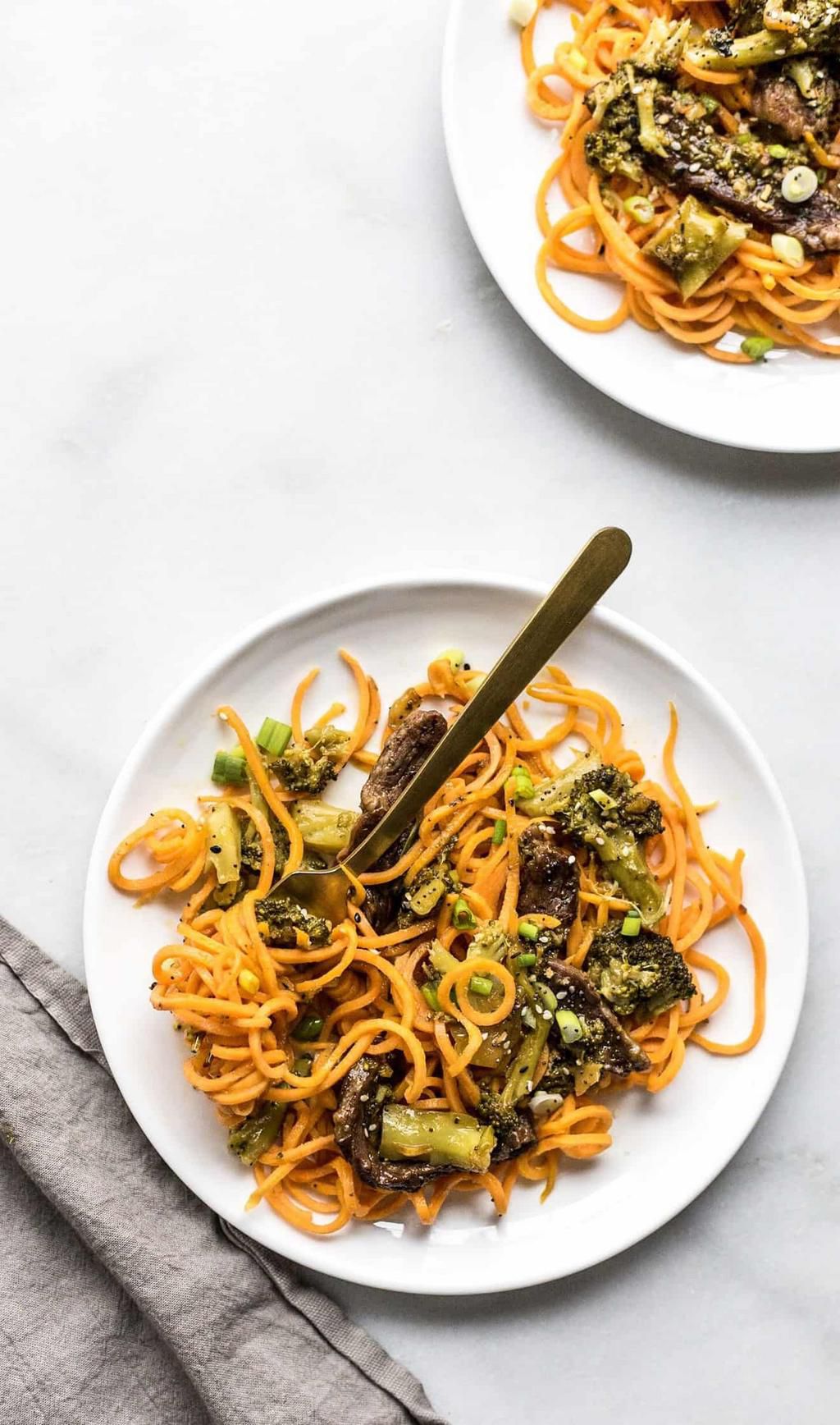 Beef and Broccoli Sweet Potato Noodles Craving Chinese takeout but struggling to find a paleo-friendly dish? Dont worry, this makeover of the classic beef and broccoli from The Toasted Pine Nut gives you the same crispy texture and combination of flavors youre looking for. Toasted Pine Nut