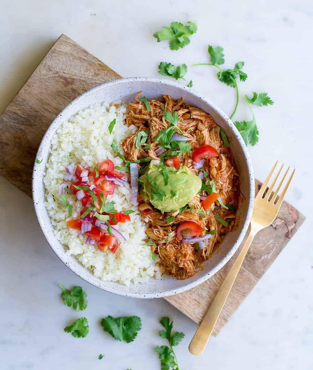 Instant Pot Chicken Tinga Paleo, keto, Whole30, and gluten-free, this is a total crowd pleaser. This instant pot dish from Wholesomelicious is easy to whip up (just 20 minutes max!) and is packed with spices like cumin, onion, cilantro, and chipotle peppers. Pair with cauliflower rice for a super low carb meal. Wholesomelicious