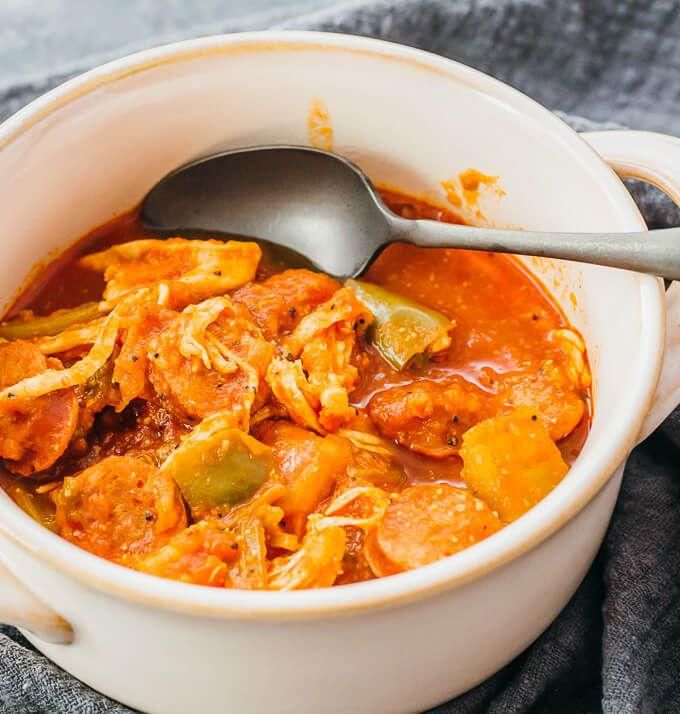 Instant Pot Gumbo Chicken and sausage come together in this classic Cajun inspired dish by Savory Tooth for a yummy, hearty paleo meal. Veggies add bulk and this can easily be enjoyed over a bed of low carb, cauliflower rice, too. And its ready in 10! Savory Tooth