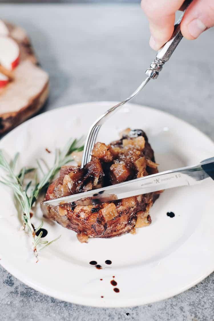 Pot Pork Chops With Apple Balsamic Seasoning Pork chops have a ton of protein and take on great flavors, like in this apple balsamic seasoning dish from Real Simple Good . It also takes 40 minutes so its easy for quick weeknight meals when you feel beat after work. Real Simple Good