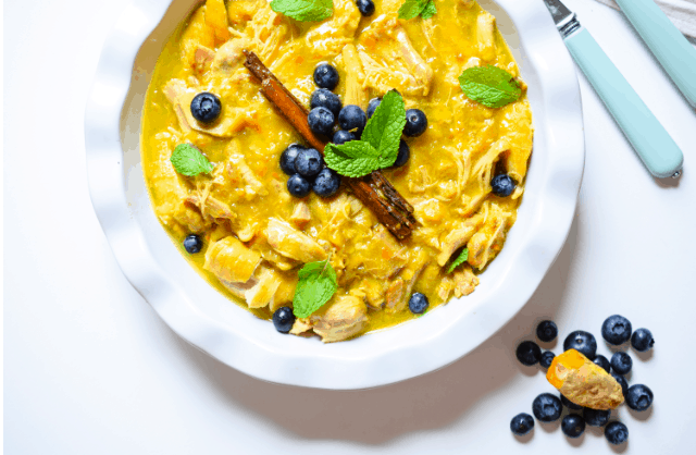 Tastes Like Pie Instant Pot Chicken This paleo chicken dish from The Castaway Kitchen has fruity flavors like pear and blueberries and some good spice like turmeric, garlic, and cinnamon. Plus, its pretty nice to look atthose pop of colors are awesome. The Castaway Kitchen