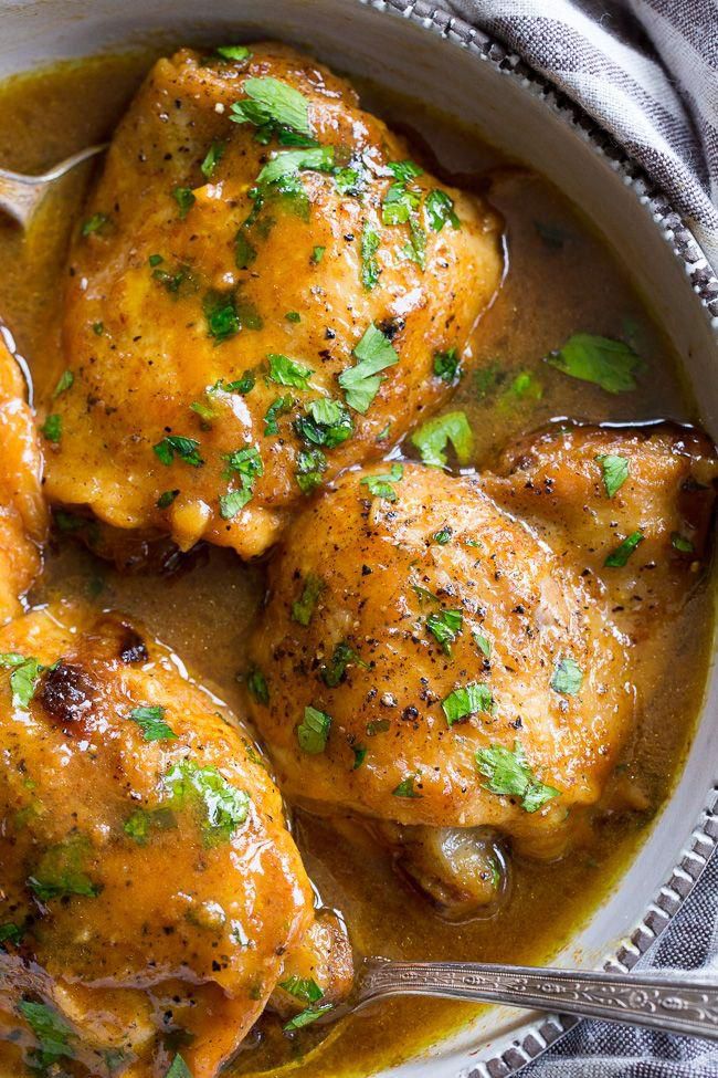 Instant Pot Honey Mustard Chicken Chicken is an easy weeknight meal, and this one from Paleo Running Momma has a sweet and tangy flavor. The skin-on thighs have a nice texture, too, and the whole meal is done in 30 minutes tops. Paleo Running Momma