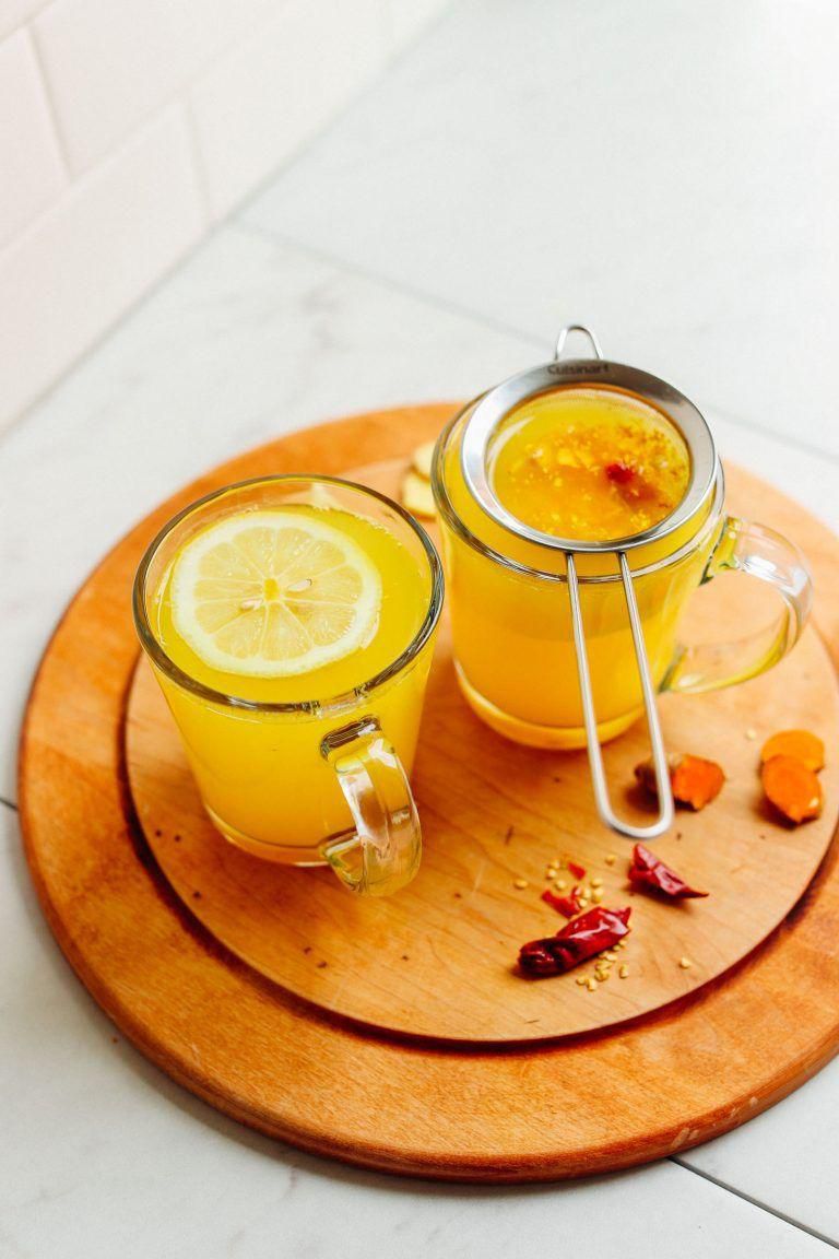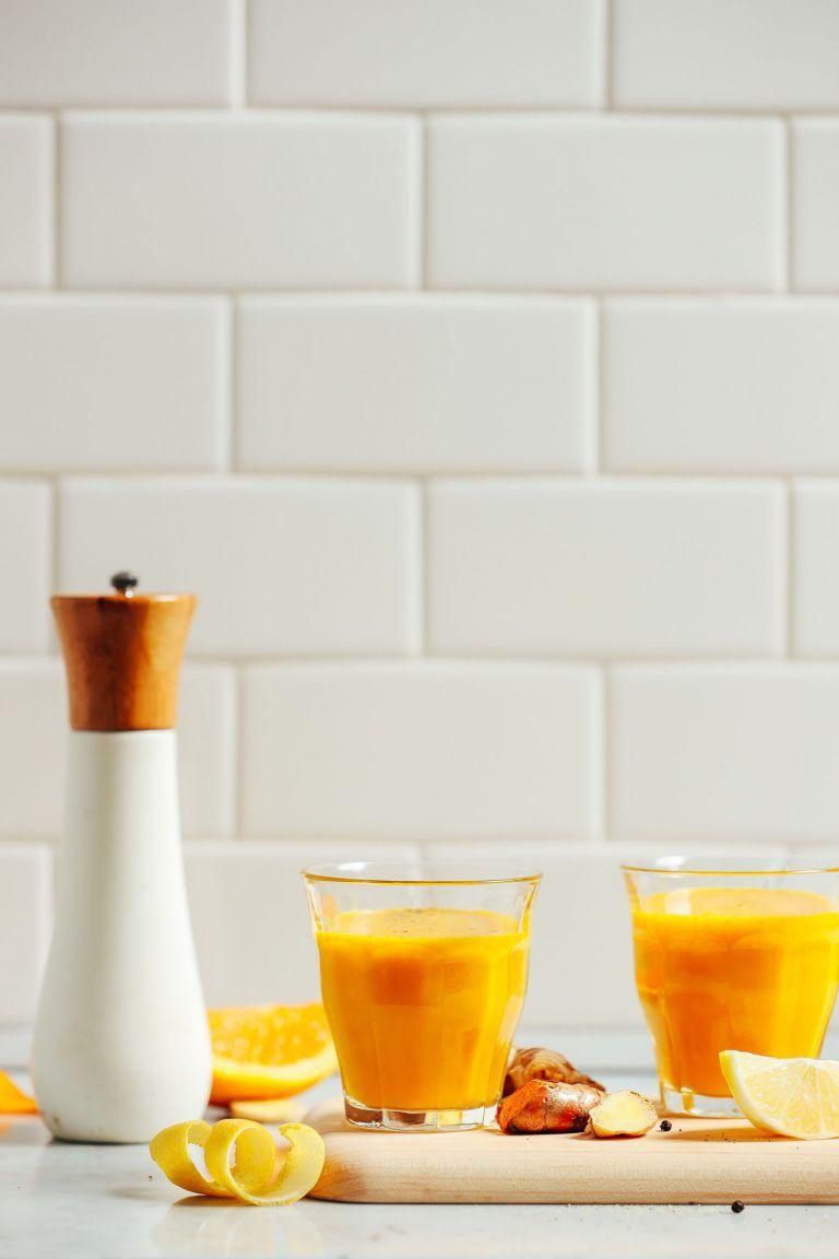Lemon Ginger Turmeric Wellness Shots While this isnt quite the type of shot they sing about in that LMFAO song, it's sure to have your immune system singing, thanks to vitamin C-packed fruit juice and antioxidant-rich spices. GET THE RECIPE Per serving: 113 calories, 1 g fat (0 g saturated), 27 g carbs, 9 g sugar, 2 mg sodium, 0 g fiber, 3 g protein Minimalist Baker