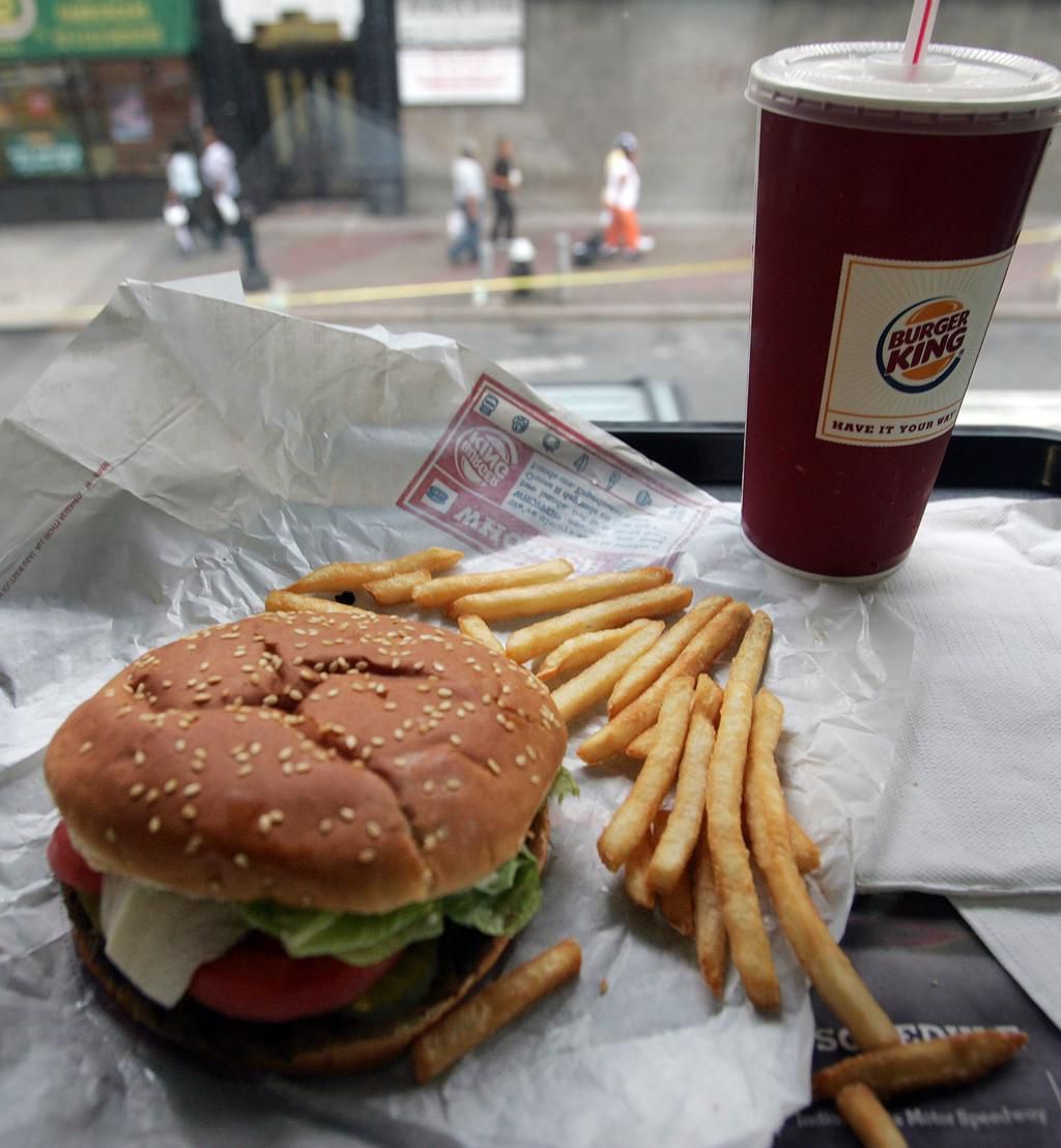 Burger King: Classic Hamburger While it may seem counterintuitive, most of the salads at Burger King are high in saturated fat, calories, and sodium, says McGrane. In general, I recommend skipping the entree-sized salads and choosing a healthier sandwich option with a small side salad in place of fries. If youre in the mood for a burger, stick with the classic hamburger, she says. For extra fiber and vegetables, ask for a side garden salad. Per serving : 240 calories, 10 g fat (3.5 g saturated), 26 g carbs, 6 g sugar, 380 mg sodium, 0 g fiber, 13 g protein Mario Tama - Getty Images