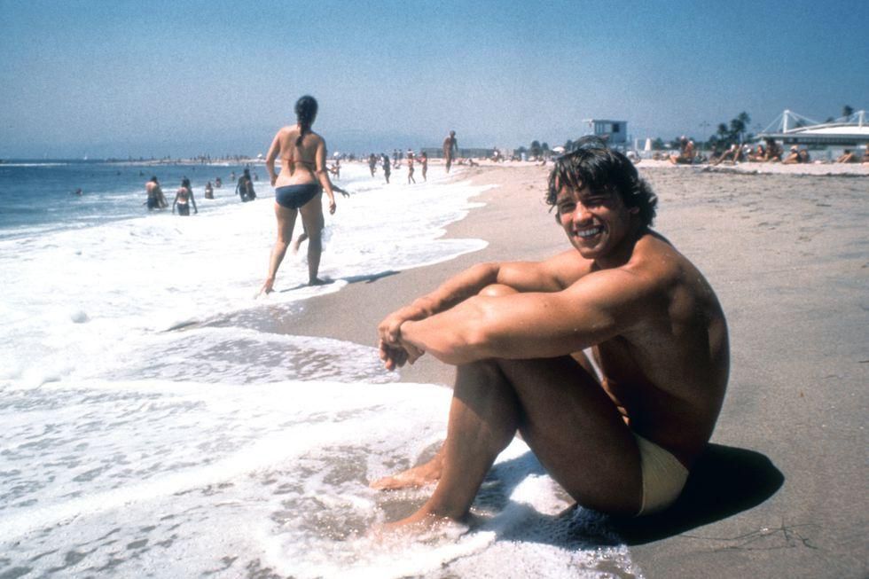 1968: Welcome to Muscle Beach The Austrian bodybuilder found himself in Venice Beachor Muscle Beach, as it was knownin California. After years of dreaming to come to America, he began training at Gold's Gym under trainer Joe Weider. Getty Images - Getty Images