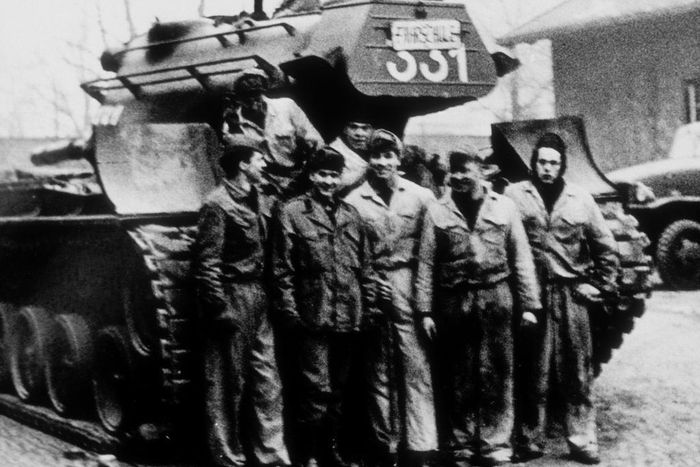 1977: Showing off the Pipes Schwarzenegger shows off his (now famous) biceps to a group of IDF soldiers in Israel. Michael Ochs Archives - Getty Images