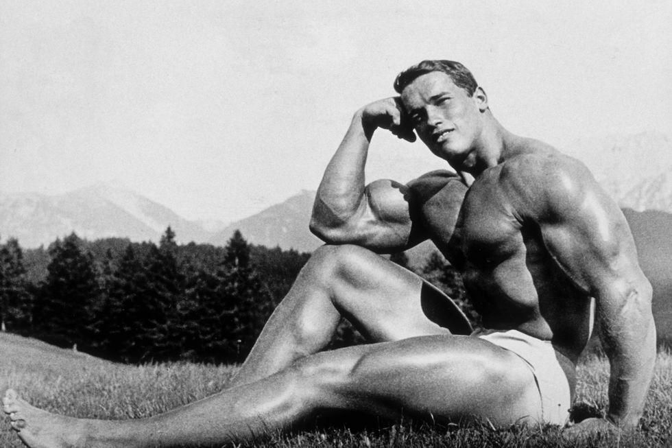 1966: Bulking Up In just one year, Schwarzenegger almost tripled the size of his muscles. Here he poses on a hillside, presumably in his native Austria. Getty Images - Getty Images