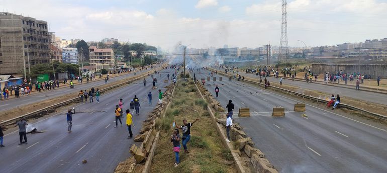 9:35 am - Police disperse protesters outside Central Police Station in Nairobi