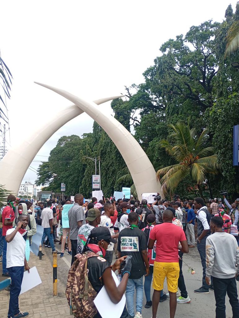 Protests have begun in Mombasa, with demonstrators taking to the streets. The crowds are marching through the city, calling for justice and accountability.