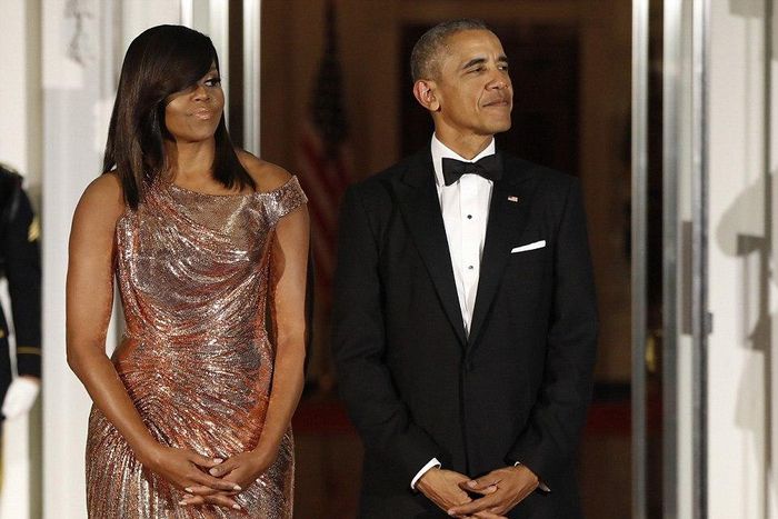 FLOTUS shows us just how lucky her husband is as she shows off her ravishing body in a stunning Versace Dress (photos)