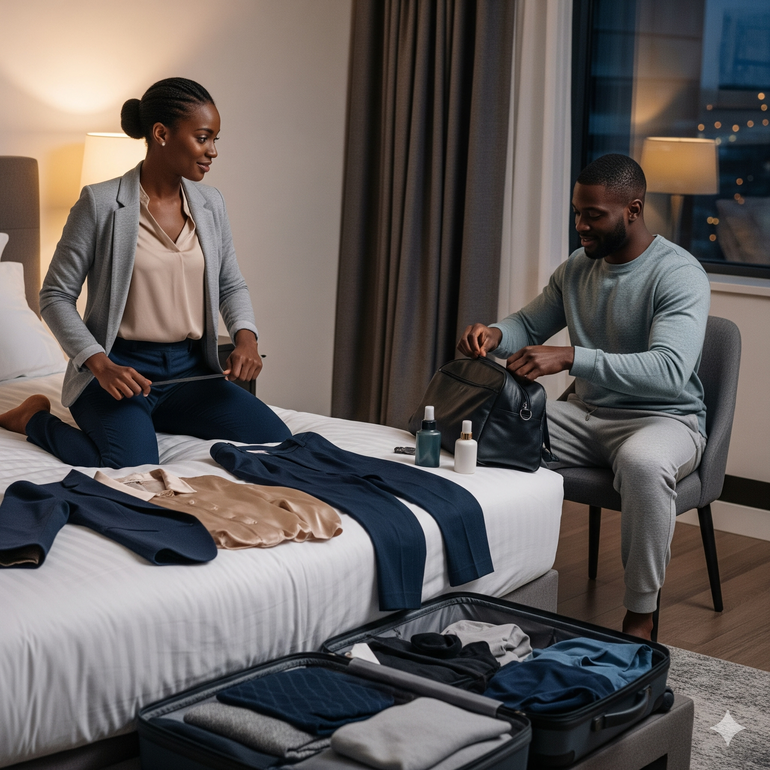 Encourage your partner (and yourself) to get things ready the night before. Lay out clothes, pack bags, charge devices, and confirm routes.