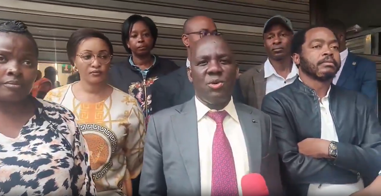"We have realised that, one, there are expired products which are being put on the shelves, putting Nairobians at risk because of food safety,” Ochieng said while addressing the media outside the Moi Avenue branch.