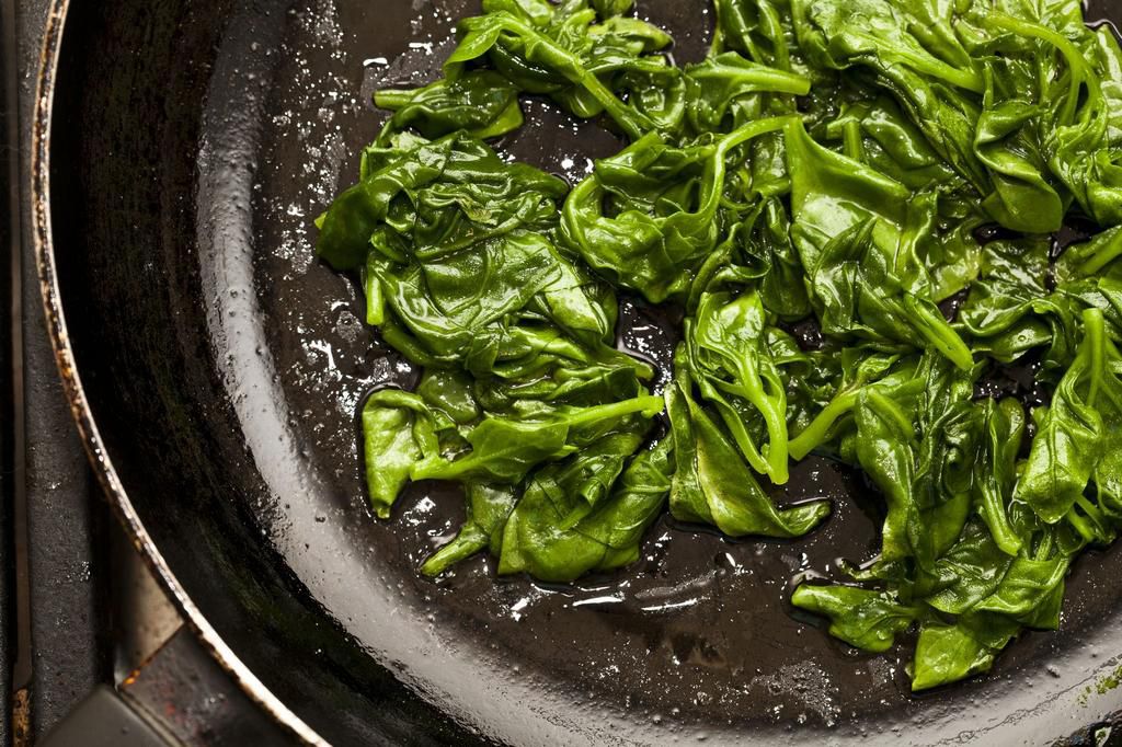 Sauted Greens Want to use up last night's leftovers? Add sauted greens to your oatmeal, says Harrington. (They pair wonderfully with an egg and some cheese.) Per serving (1 cup raw spinach, no cooking oil): 7 calories, 0.1 g fat (0 g saturated), 1.1 g carbs, 0.1 g sugar, 23.7 mg sodium, 0.7 g fiber, 0.9 g protein Aleksandra Piss - Getty Images