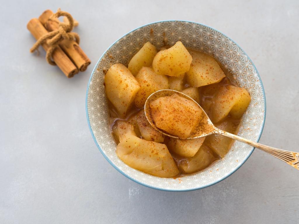 Caramelized Apples It doesn't have to be fall to enjoy this cozy topping. Heat a teaspoon of butter in a skillet, cut up the apple, and saut until browned on the edges, says Andrews. Per serving (1 small apple + 1 tsp butter): 114 calories, 4.5 g fat (2.6 g saturated), 21 g carbs, 15.5 g sugar, 33.7 mg sodium, 3.6 g fiber, 0.4 g protein tenkende - Getty Images