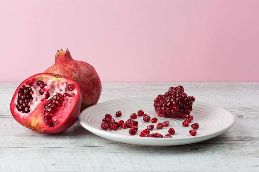 Pomegranate Seeds Pomegranate seeds are crunchy, juicy, and sweet all at once. Theyre flavorful, slightly tart, and have a lovely pop to them, says Haas. Per half-cup serving: 72 calories, 1 g fat (0.2 g saturated), 16.3 g carbs, 11.9 g sugar, 2.6 mg sodium, 3.5 g fiber, 1.5 g protein Tsvi Braverman / EyeEm - Getty Images