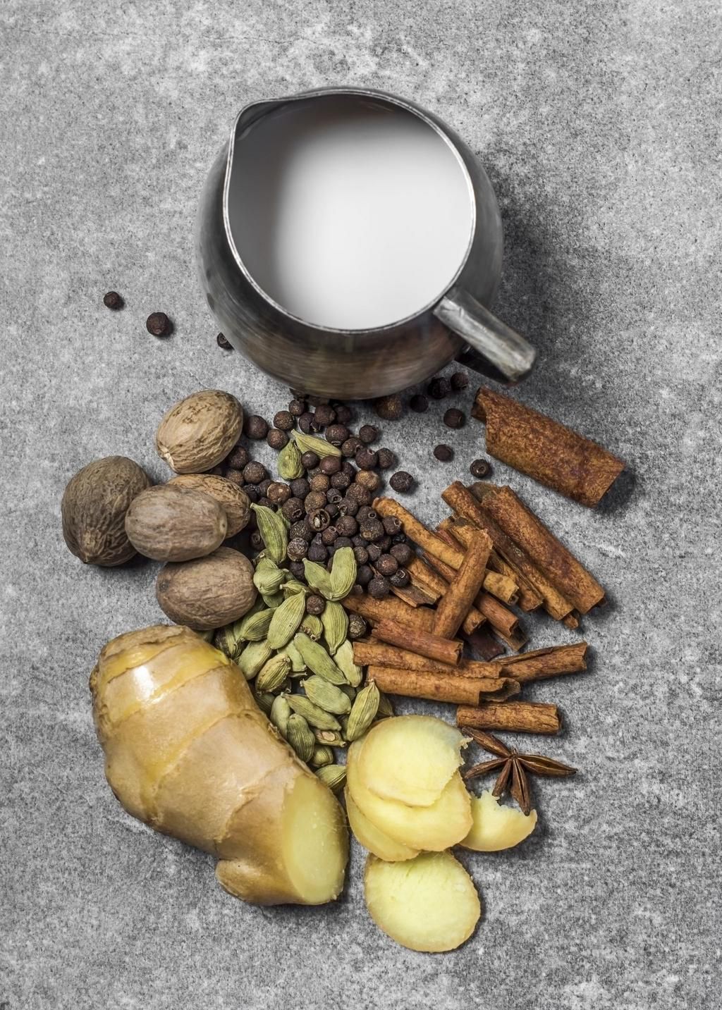 Chai Tea Chaia blend of black tea, cloves, ginger, cardamom, and cinnamonis inherently warming, and perfect for a bowl of oats. Andrews recommends cutting open a chai tea bag and stirring the tea right into your oats. (Nutrition info is for brewed chai, so values may be slightly higher when eating it.) Per tea bag: 0 calories, 0 g fat (0 g saturated), 0 g carbs, 0 g sugar, 0 mg sodium, 0 g fiber, 0 g protein Claudia Totir - Getty Images