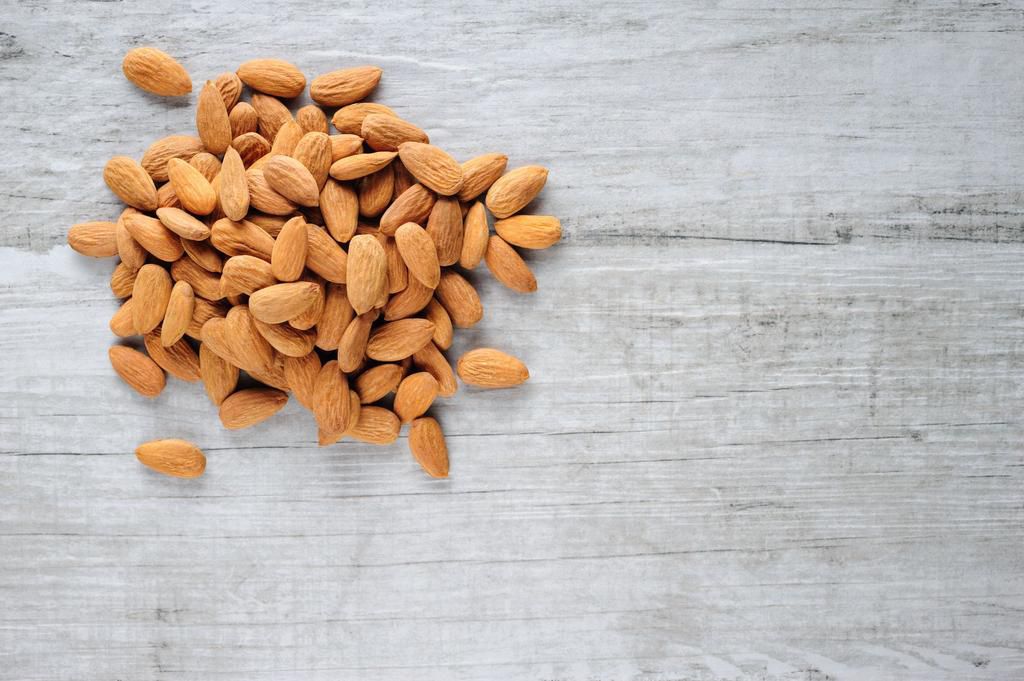 Almonds Almonds are packed with healthy monounsaturated fats. Use any type you like, but go for blanched (which have the skins removed) if you prefer a sweeter taste, says Harrington. Per 1-ounce serving: 167 calories, 14.9 g fat (1.1 g saturated), 5.3 g carbs, 1.3 g sugar, 5.4 mg sodium, 2.8 g fiber, 6.1 g protein Serghei Starus / EyeEm - Getty Images