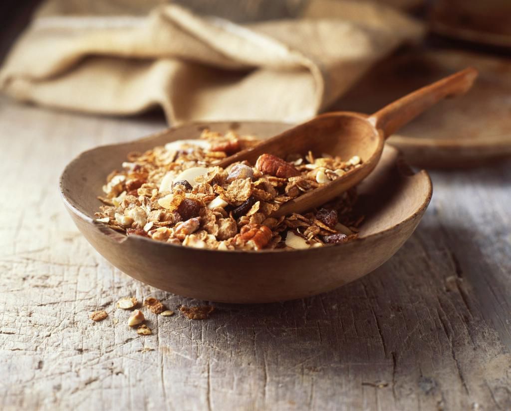 Granola Oats on oats on oats. Granola is a delicious, crunchy oatmeal topper, says British Columbia-based dietitian Pamela Fergusson , RD. Scour your nutrition labels and look for the lowest-sugar option . Per half-cup serving: 220 calories, 2.5 g fat (0.5 g saturated), 43 g carbs, 12 g sugar, 0 mg sodium, 6 g protein Diana Miller - Getty Images