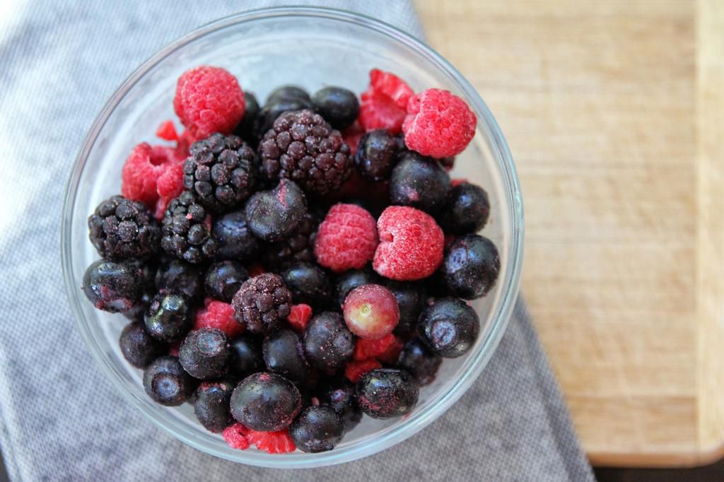 Frozen Berries The trick here: Microwave your frozen berries before adding then to your bowl. They get all juicy, and that juice is a terrific natural sweetener for oatmeal, says Gorin. If possible, pick frozen wild blueberries, which have twice the antioxidants as regular blueberries, she says. Per 1-cup serving: 80 calories, 0 g fat (0 g saturated), 18 g carbs, 9 g sugar, 0 mg sodium, 6 g fiber, 0 g protein Monica Murphy - Getty Images
