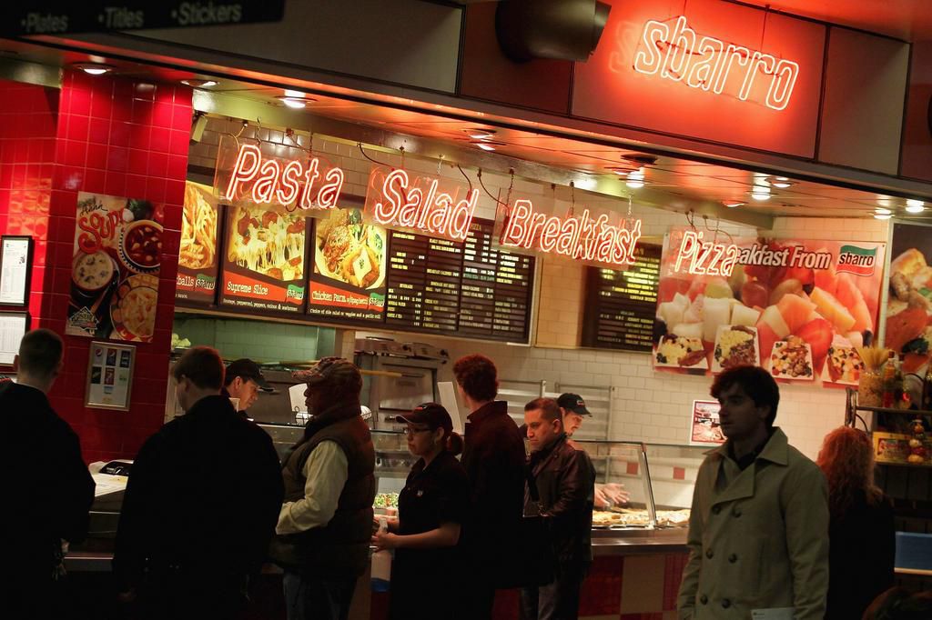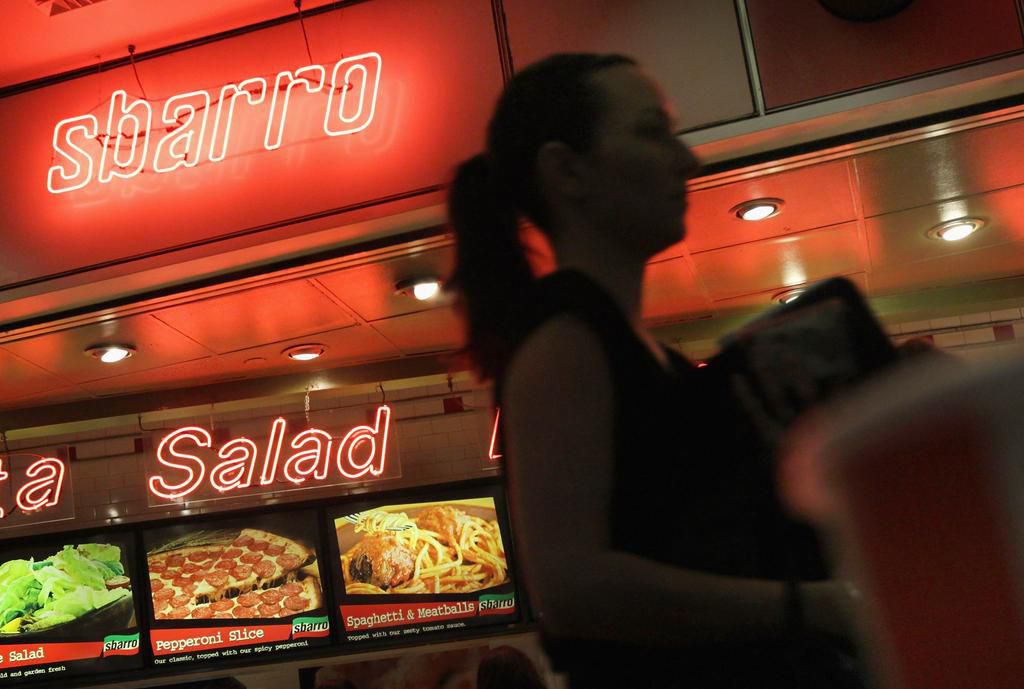 Roman Double Duo Pizza Slice at Sbarro If you thought the New York Meat Primo Pizza Slice was high in sodium, meet this slice, which has 1,860 milligrams of the stuff. Healthier option: Choose the Roman Cheese Pizza Slice to slash the sodium by [about] 700 milligrams, suggests Amer. But, she points out, its still a high sodium option at the food court! Scott Olson - Getty Images