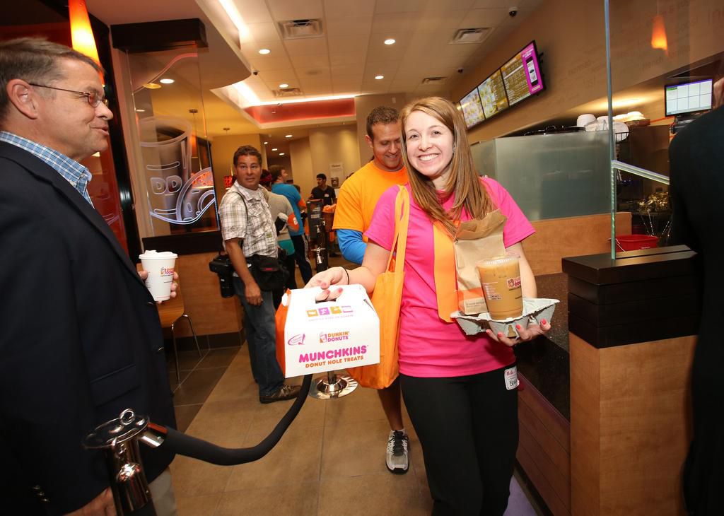 Caramel Swirl Frozen Coffee with Cream at Dunkin' Donuts A large of these babies ? 1,120 calories. Healthier option: Switch to a small and opt for milk instead of cream, says Amer. The result with skim: 470 calories. Rachel Murray - Getty Images