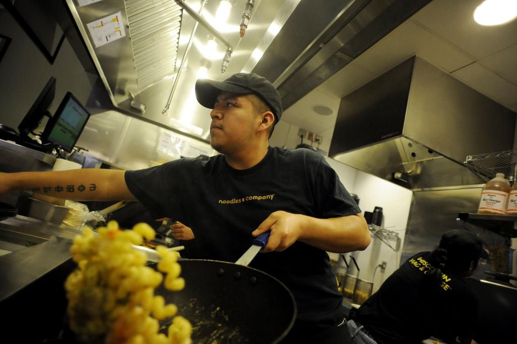 Buffalo Chicken Mac at Noodles & Company A small of this cheesy order has 650 calories and 2,050 milligrams of sodium. A regular packs 1,100 calories and 3,180 milligrams of sodium. (Reminder: The USDA says most people shouldnt consume more than 2,300 milligrams of sodium per day.) Healthier option: "If you're craving mac and cheese, go for a small order of the Wisconsin Mac and Cheese and add a side of grilled chicken or sauteed shrimp for the protein boost," says Jessica Levinson , MS, RDN, CDN, a culinary nutrition expert in Westchester, New York. "The small Wisconsin Mac is less than half the calories [490 calories] of a large Buffalo Chicken Mac, and it has way less sodium [780 milligrams]." RJ Sangosti - Getty Images