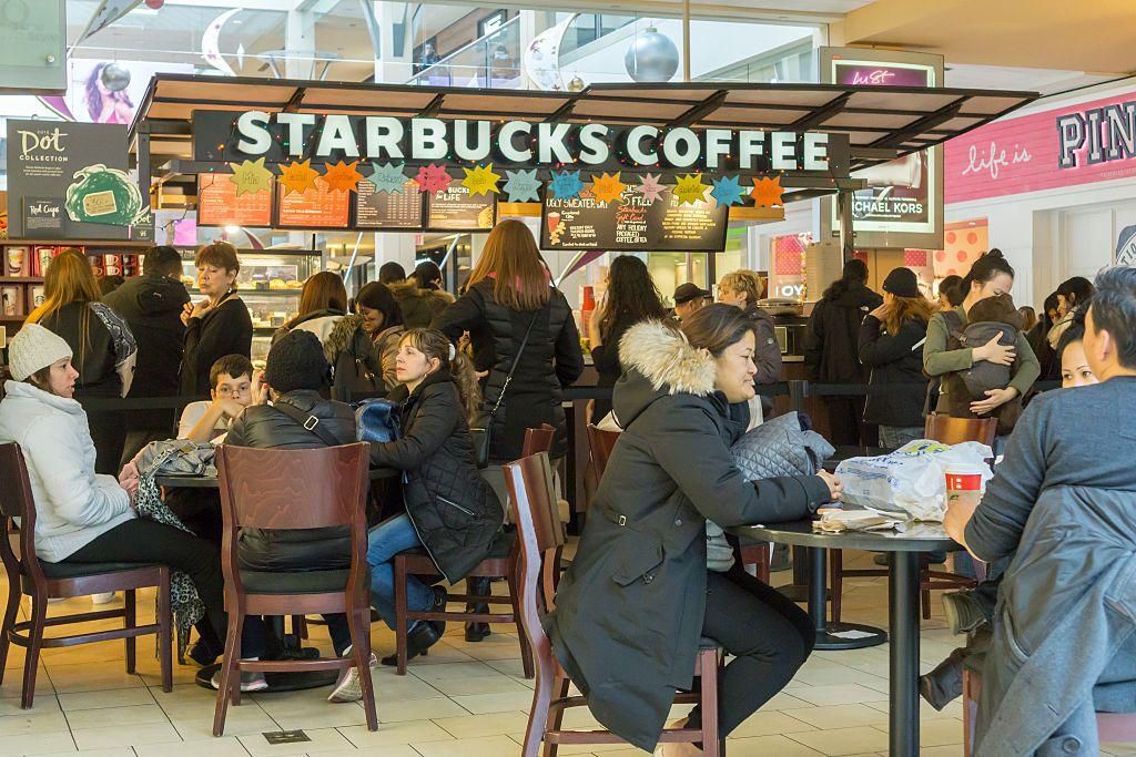 Chocolate Cookie Crumble Crme Frappuccino at Starbucks If shopping wears you out, you might think about grabbing this Frappuccino. A Grande's got 470 calories and 52 grams of sugar. Healthier option: The Iced Skinny Mocha , recommends Harris-Pincus. Still cold and refreshing, still chocolatey, this Grande has 120 calories and nine grams of sugar. "That's a huge difference," she says. Richard Levine - Getty Images