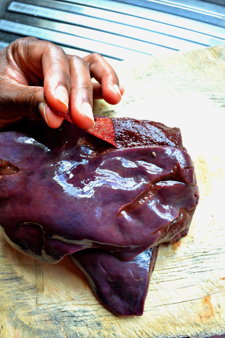 When preparing liver whether it's beef, goat, or chicken many home cooks overlook one key step: removing the thin membrane that surrounds the organ.